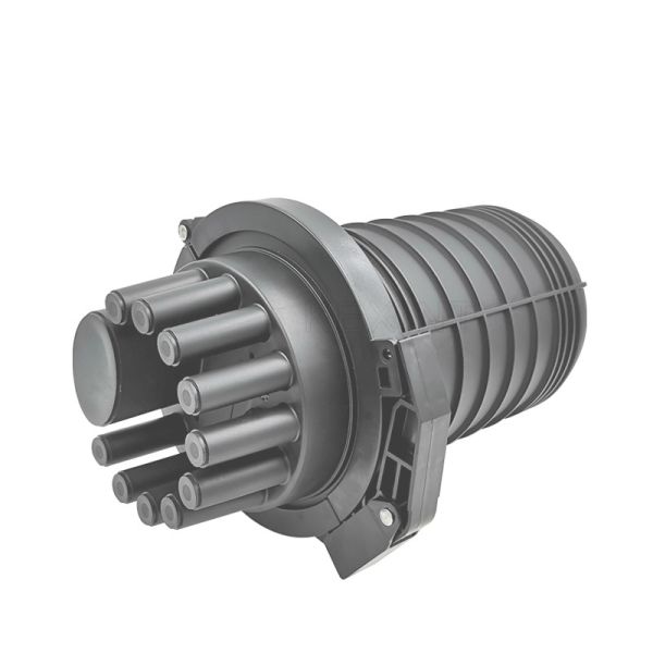 A type of dome closure series, used for direct connection during optical fiber transmission, and provides joint connection protection, with 10 small round holes and 1 large hole; heat sealing with heat shrinkable casing; can be used for overhead, pole, wall and buried installations. With good sealing performance, the simple installation and wide application range are the best choice for optical fiber connection.