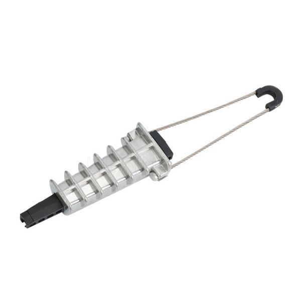 Aluminum alloy tension clamp wedge type anchor clamp for optical fiber cables , Automatic conical tightening. Opening bail easy to be installed.
